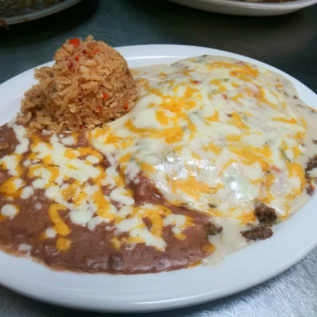 Enjoy any Burrito Plate enchilada style for $2.25