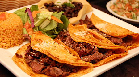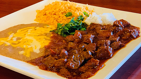 Served w/rice & refried beans (whole black beans or pinto beans are available) Add Sour Cream $1.25; Add Guacamole $1.50 on top. Shredded beef add .75¢ each item